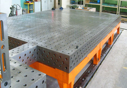 鑄鐵平臺材料為HT200-300,QT400-600,采用刮研工藝,工作面上可加工V形、T形、 U形槽、燕尾槽、圓孔、長孔等,大型鑄鐵平臺是用于工件、設備檢測、劃線、裝配、焊接、組裝、鉚焊的平面基準量具。